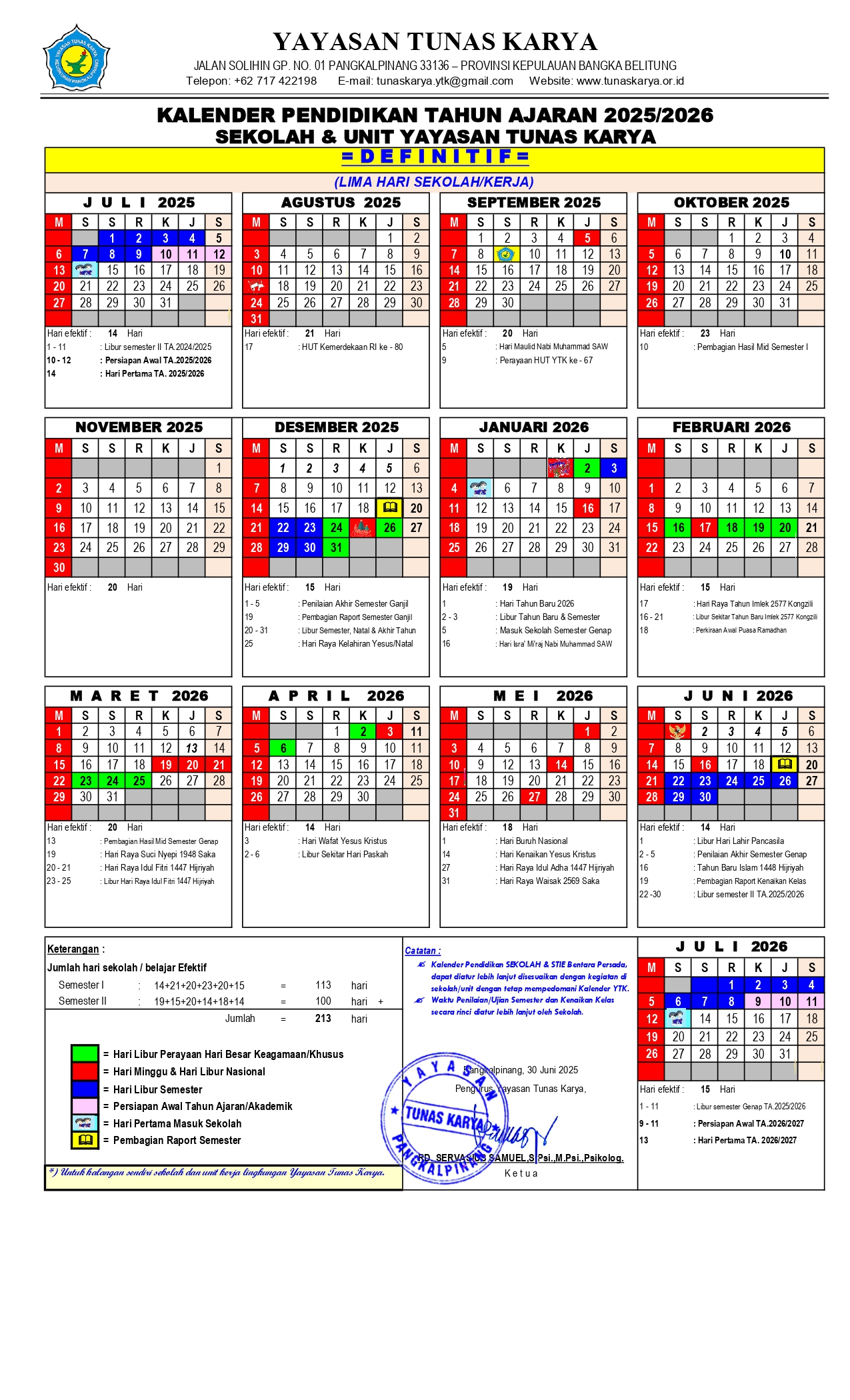 Kalendar Akademik & Kantor Yayasan Tunas Karya